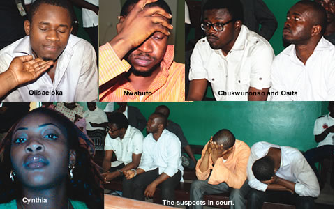It was a trag--carnival like mood at a Yaba Chief Magistrate’s Court, Lagos, which was filled to capacity on Monday as the police arraigned four suspects over the murder of Cynthia Osokogu, daughter of Maj-Gen Frank Osukogu (retd.), on July 22, 2012.
