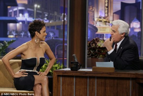 Recently, as captured in pictures, popular talk show host Jay Leno couldn't take his eyes off Halle Berry's boobs when she appeared on his show because she wore a strapless low cut dress that revealed too much of her cleavage.