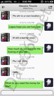 From this munched chat, she was begging money from a strange guy on twitter and even agreed to travel all the way from Ogun State down to Lagos State to give him sex because of money, not minding that the person might even be a ritualist or worst.