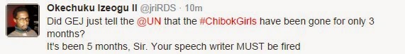 “She is actually one of our daughters abducted from Government Girls Secondary School in Chibok. She was found in Mubi where her abductors dumped her and was later taken to Yola, the girl is four months pregnant.”