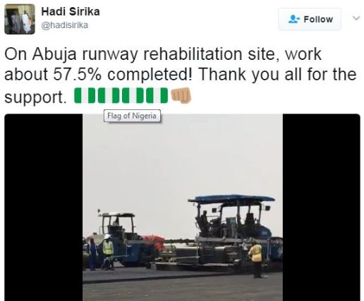 While inspecting the final lap of work on the runway, Minister of State for Aviation, Hadi Sirika, confirmed that the airport is 96% ready and assured everyone that the airport will be reopened on the 19th of April, 2017.