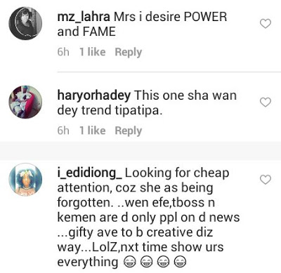 One of the controversial ladies in the recently concluded BBNaija reality show, Gifty has released a bathroom photo of her self. Since una don dey forget about her, Gifty decide to use her n*de pic to grab more attention. Lolz! See the photo and reactions...
