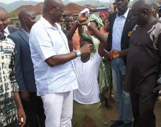 Osas who was overwhelmed by the governor's gesture went on his kneels in appreciation, thanking God and governor Fayose for the favour.