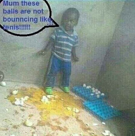 Probably his parents should buy enough Table Tennis balls for him and let him know the difference with eggs, so he won't be engaging in wrong 'bouncing; any more. Smiles!