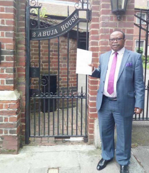 A Nigerian man identified as Chief Sunbo Onitri was at the Abuja house in the United Kingdom on May 29th, 2017 to deliver a letter to President Muhammadu Buhari.