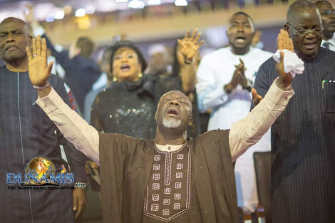Senator Dino Melaye was very visible at the inauguration of Dunamis Church new building in Abuja. He prostrated to greet the founder of Winners Chapel, Bishop David Oyedepo and was also spotted with other dignitaries.