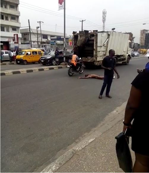 It is unclear what led to the shocking incident. This caused a scene in the area as the man laid on a motorable road and derailed vehicular movements.