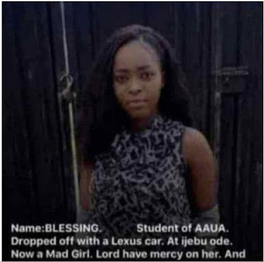 The lady has been identified as Blessing and said to be a student of Adekunle Ajasin University, Akungba in Ondo state.