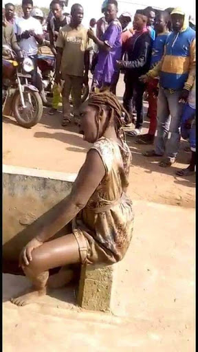 She was later tied up by people around after taking her public displays to another level and causing disturbance.