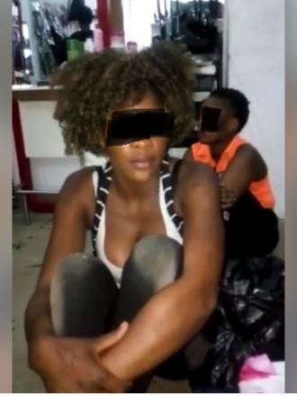 Upon being searched, clothing items were found in their possession. The ladies were forced to sit on the ground and were filmed by the workers who blasted and embarrassed them.