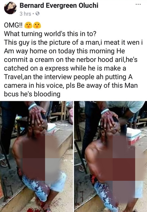 This young lady, Bernard Evergreen Oluchi, who is a serving member of the National Youth Service Corps (NYSC), has turned an internet sensation after she took to Facebook to share the story of a man who was beaten for committing a crime.