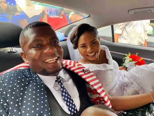 The groom rocked an American flag designed suit while his bride looked beautiful in her white wedding dress, as they displayed their love for the US. More pics...