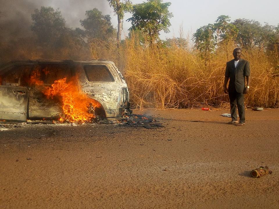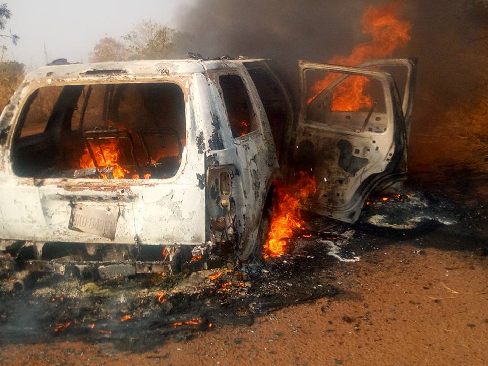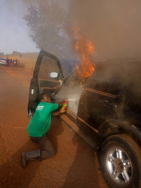The occupants escaped from the vehicle before trying to quench the fire all to no avail. The SUV was burnt beyond recognition as can be seen in the pictures.