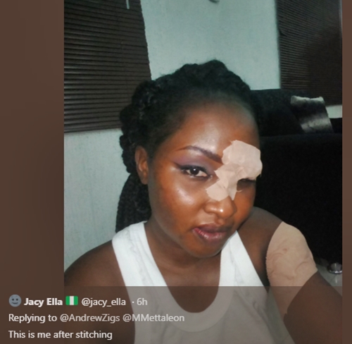 A beautiful lady identified as Jacy Ella, has taken to social media to share some graphic photos and reveal how he was savagely attacked by armed robbers in Port Harcourt, Rivers state.