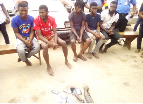 The suspects arrested were 22-year old Opeyemi Suraju, 18-year old Abdullahi Hammed, 20-year old Abiodun Adegoke, 25-year old Samuel Innocent, 20-year old Basit Makinde, 23-year old Montunrayo Akeem.
