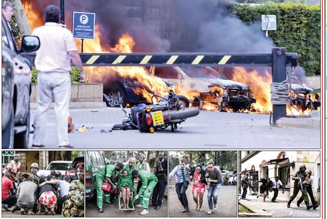 The attack began at about 15:00 local time (12:00 GMT). Kenyan media say the gunmen arrived at the complex by car, shot their way past guards, threw bombs at vehicles in the car park and entered the building.